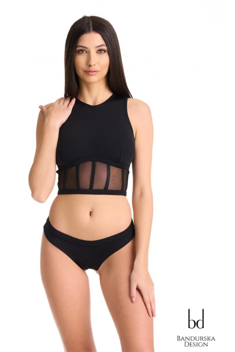 Bandurska’s Romilly top is incredibly sexy whilst providing a good amount of coverage. With mesh corset details, a high neck and a zip up back.