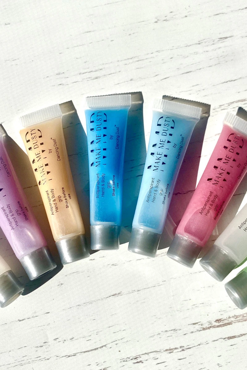 Make Me Dusty is an antiperspirant liquid/gel pole grip specially formulated for normal to sweaty skin. It reduces sweat and assists with grip on the hands and body. It features a delicately scented pearlescent formula that’s great for glitter lovers.