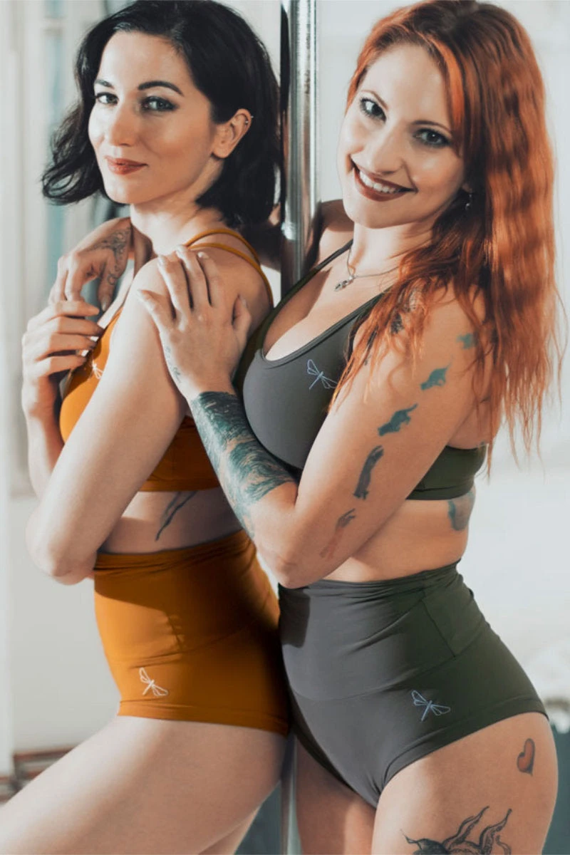 The Nicole top is a classic shorts bra with twist. With full chest coverage and strappy cross over back straps this top is supportive and allows for maximum grip from the shoulder area – perfect for nailing shoulder mount tricks!