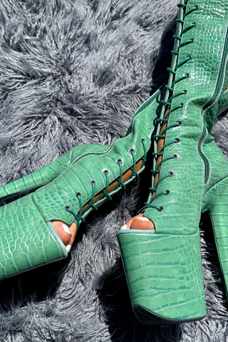 Hella Heels Killing Adam Open Toe Knee High Boots – 8inch