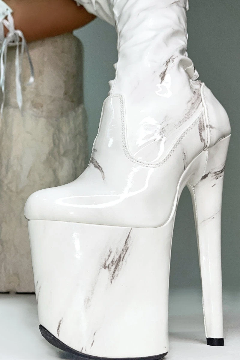 🌩️ Pure White Marble, with white ribbon laces, 8 inches of elevated beauty