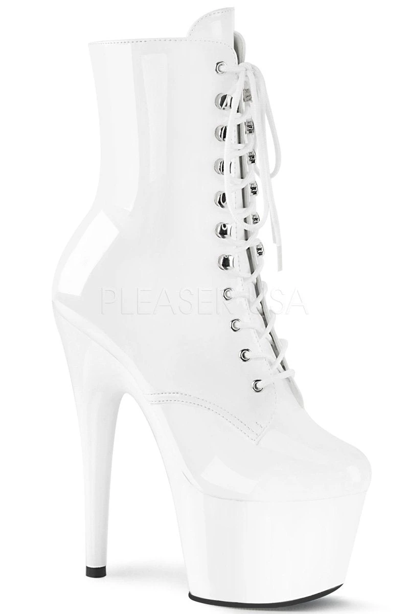 - Patent White Platform Lace-Up Front Ankle Boot, Inside Zip Closure