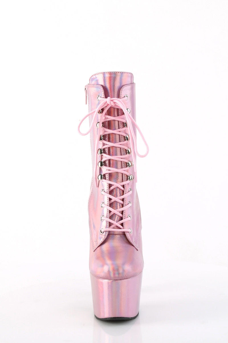 - Holographic Baby Pink Platform | Lace-Up Front Ankle Boot | Inside Zip Closure