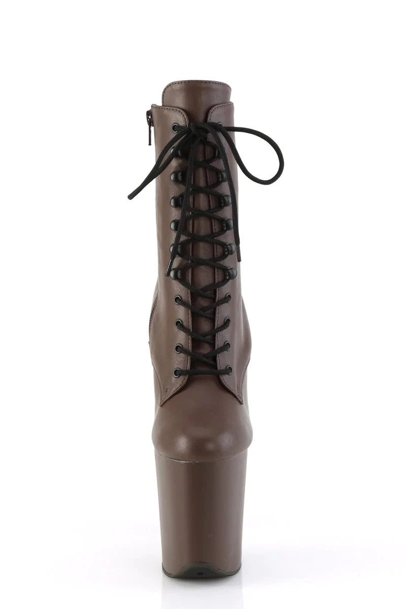 - Matte Mocha Platform, Lace-Up Front Ankle Boot, Inside Zip Closure