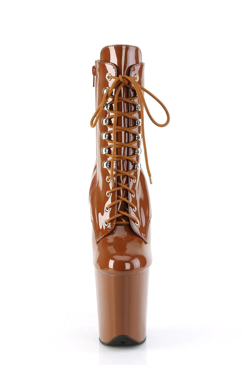 - Patent Caramel Platform, Lace-Up Front Ankle Boot, Inside Zip Closure