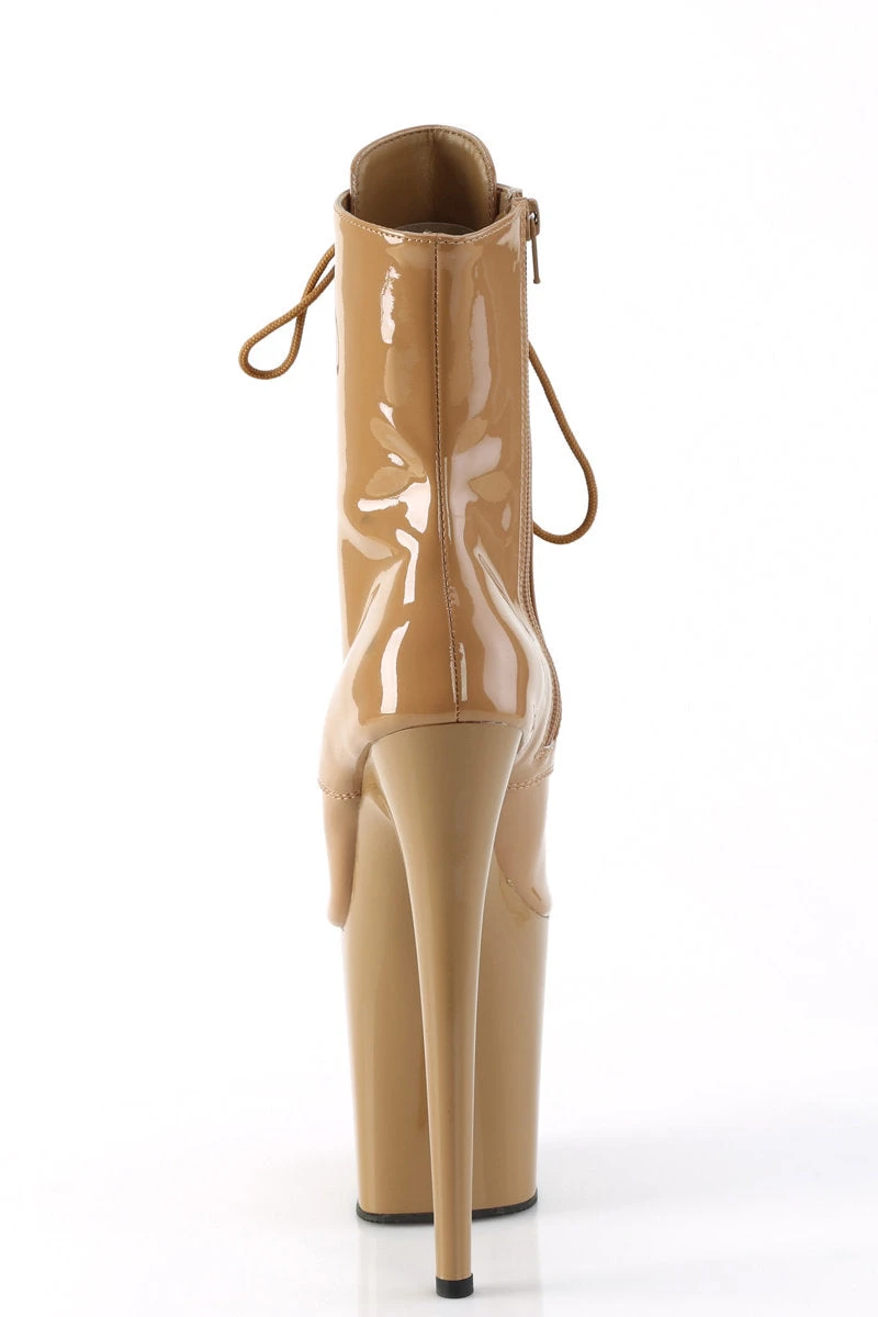 - Patent Toffee Platform, Peep Toe, Lace-Up Front Ankle Boot, Inside Zip Closure